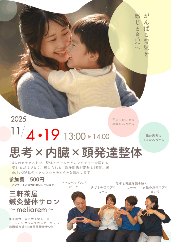 11/4・19 三軒茶屋 思考×内臓×骨格 整体体験イベント